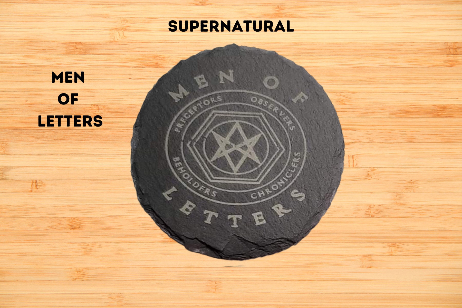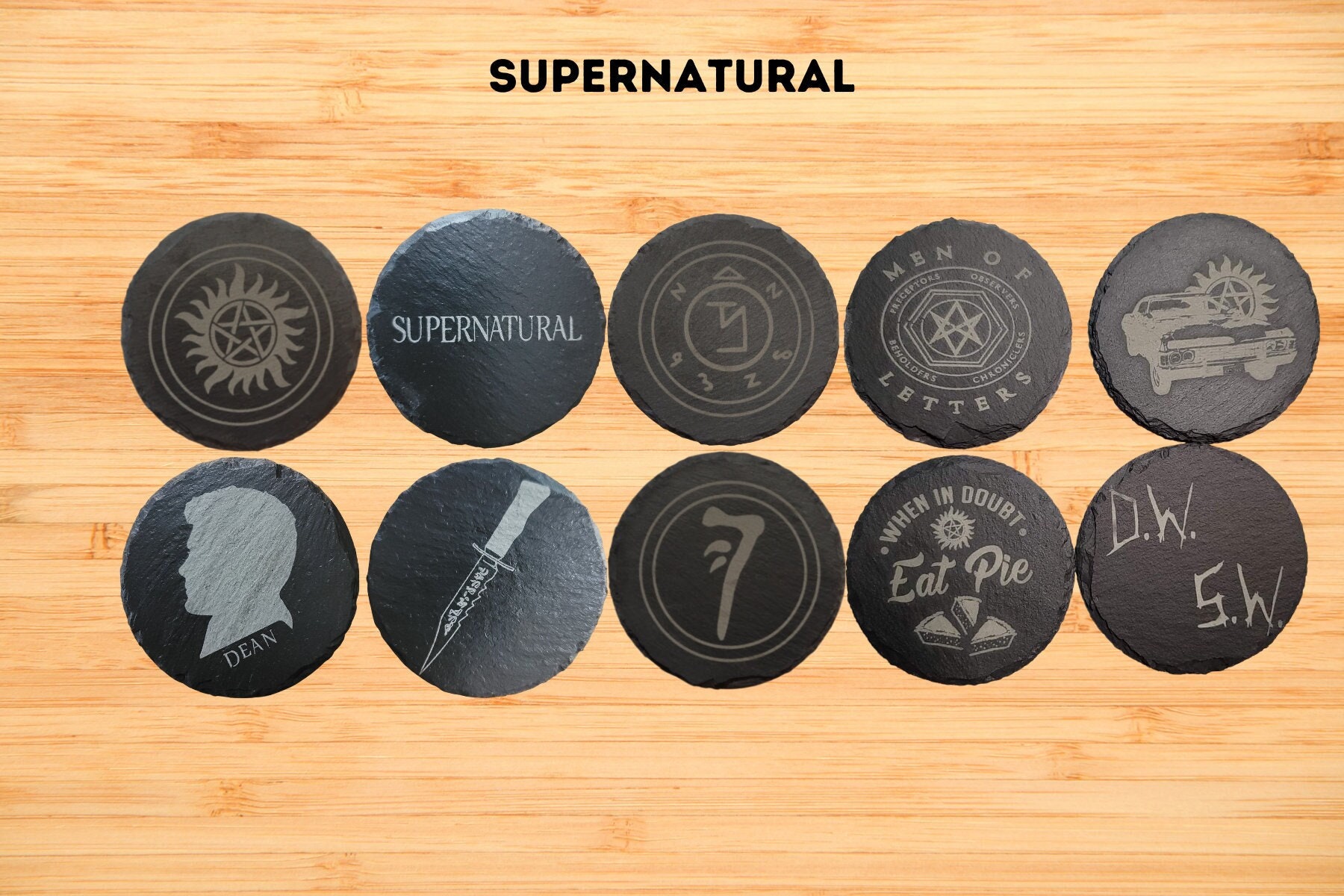 Supernatural Themed Engraved Slate Coasters set